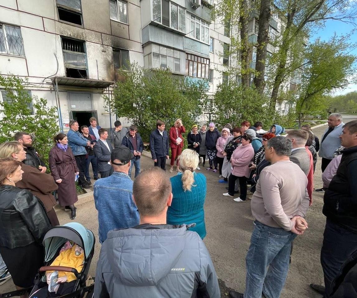 Глава Оренбурга Альберт Юмадилов встретился с жителями дома №63 по улице Беляевской, пострадавшего от возгорания.